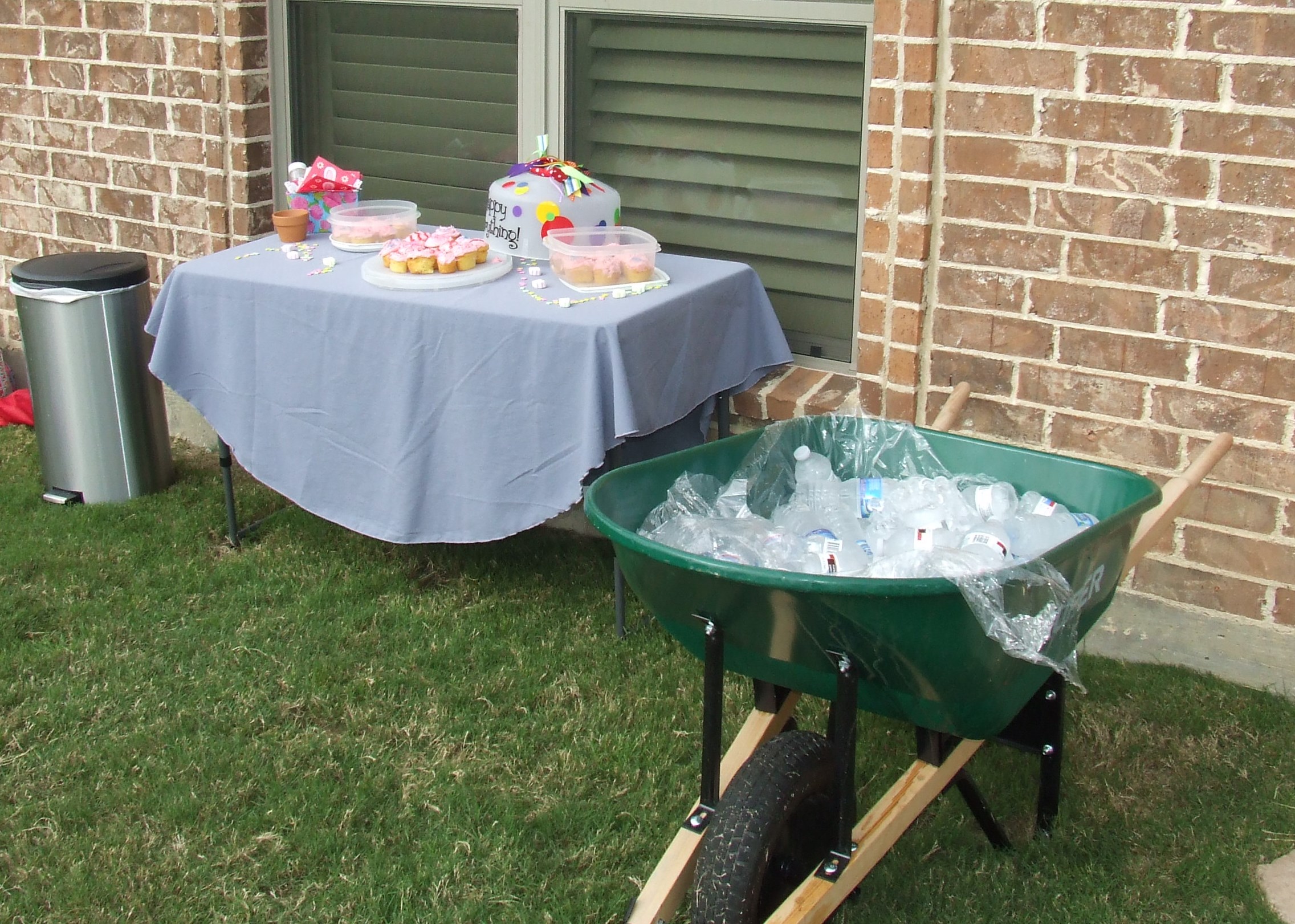 - TIP: Mini-water bottles;With a permanent marker, write a number on the lids of the water bottles instead of having people write their initials or names. Have a sign posted letting them know to remember their number for a contest! Serve the water bottles in a unique spring season style by placing them in a wheelbarrow lined with plastic and filled with ice.