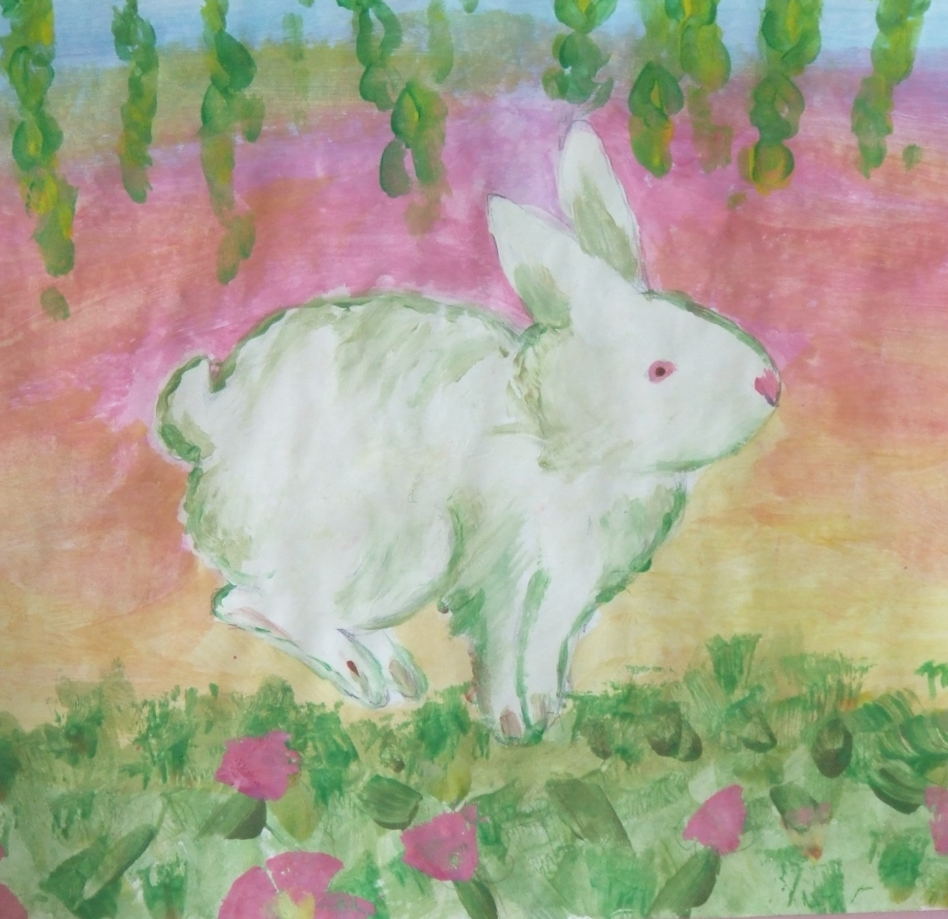 N- Navigate the route of the little white rabbit’s journey by drawing the pictures in chronological order with arrows pointing him in the right direction. Make it look like a map instead of a linear timeline of events.