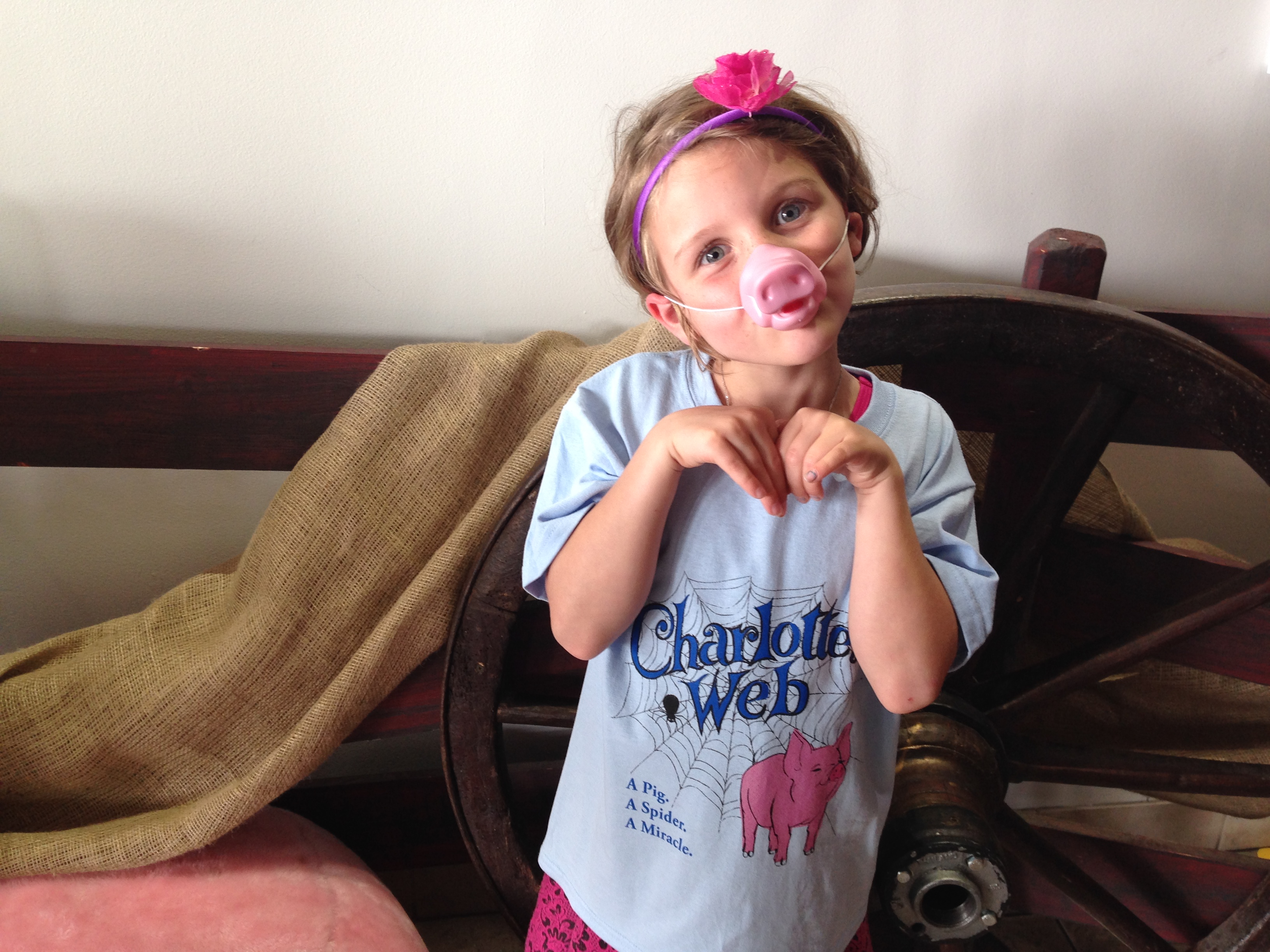 My second grader went with his school to the play, so I had a mommy-daughter date to see it too, and we all LOVED it! The cast at the Dallas Children’s Theater capture each character in a memorable way. At first, we thought it may be hard to fall in love with the characters since they are humans acting as farm animals (a spider, pig, geese, and cows, rat, and so on), but it took just a few minutes before we loved each one as though they were the very characters E.B. White created.