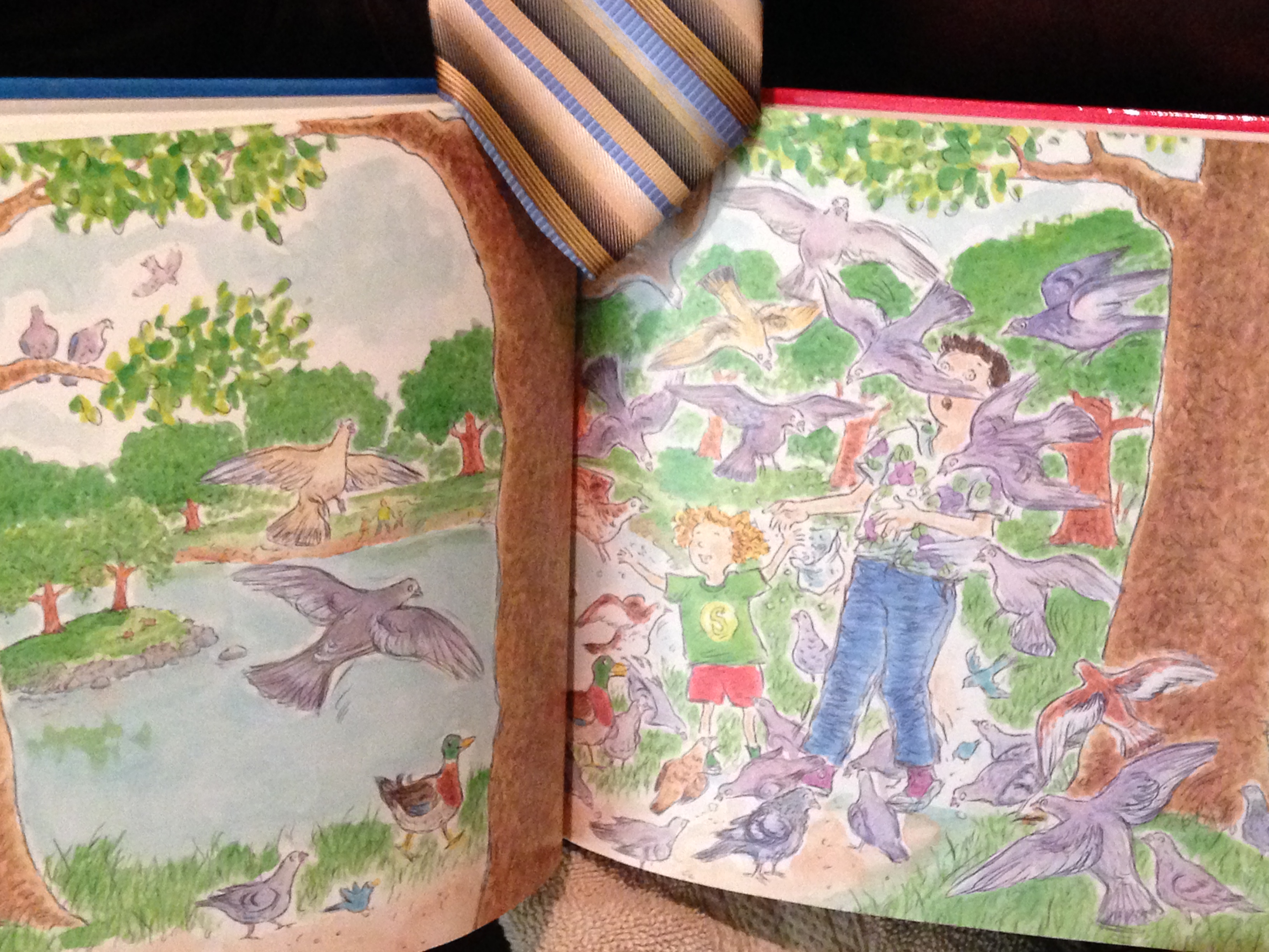 Next she takes him to the duck pond, where dad buys Susie food for the ducks.