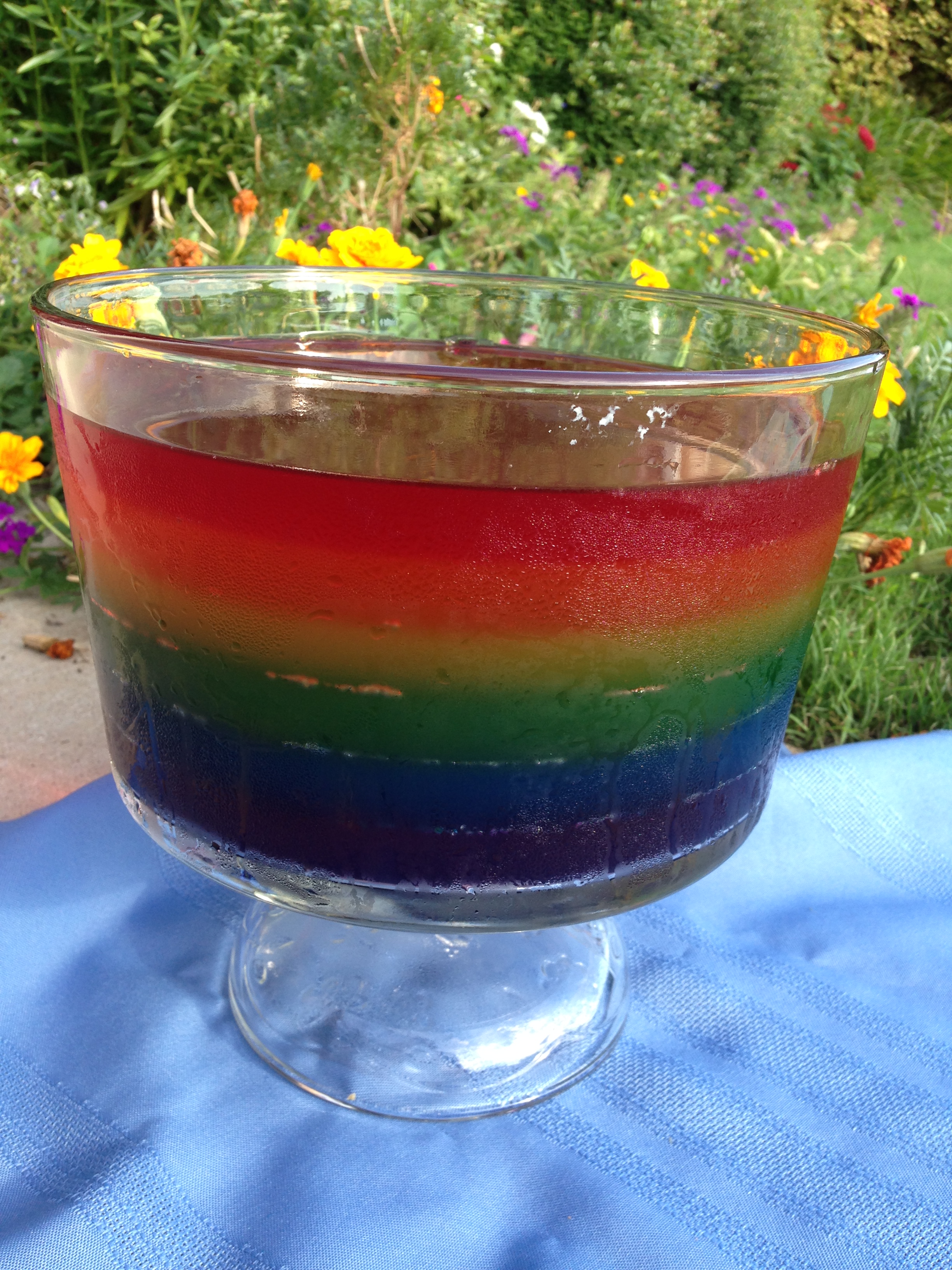 *RAINBOW JELL-O: Purchase one small box of Jell-O mix in these colors: red, orange, yellow, green, blue, and purple. Serve in a glass container so all the colors can be easily seen. Start with purple at the bottom. Make mix and refrigerate for 2 hours. Add next color. When serving, add cool whip or whipped topping for the clouds. Maybe even include a few yellow round sprinkles for the gold!
