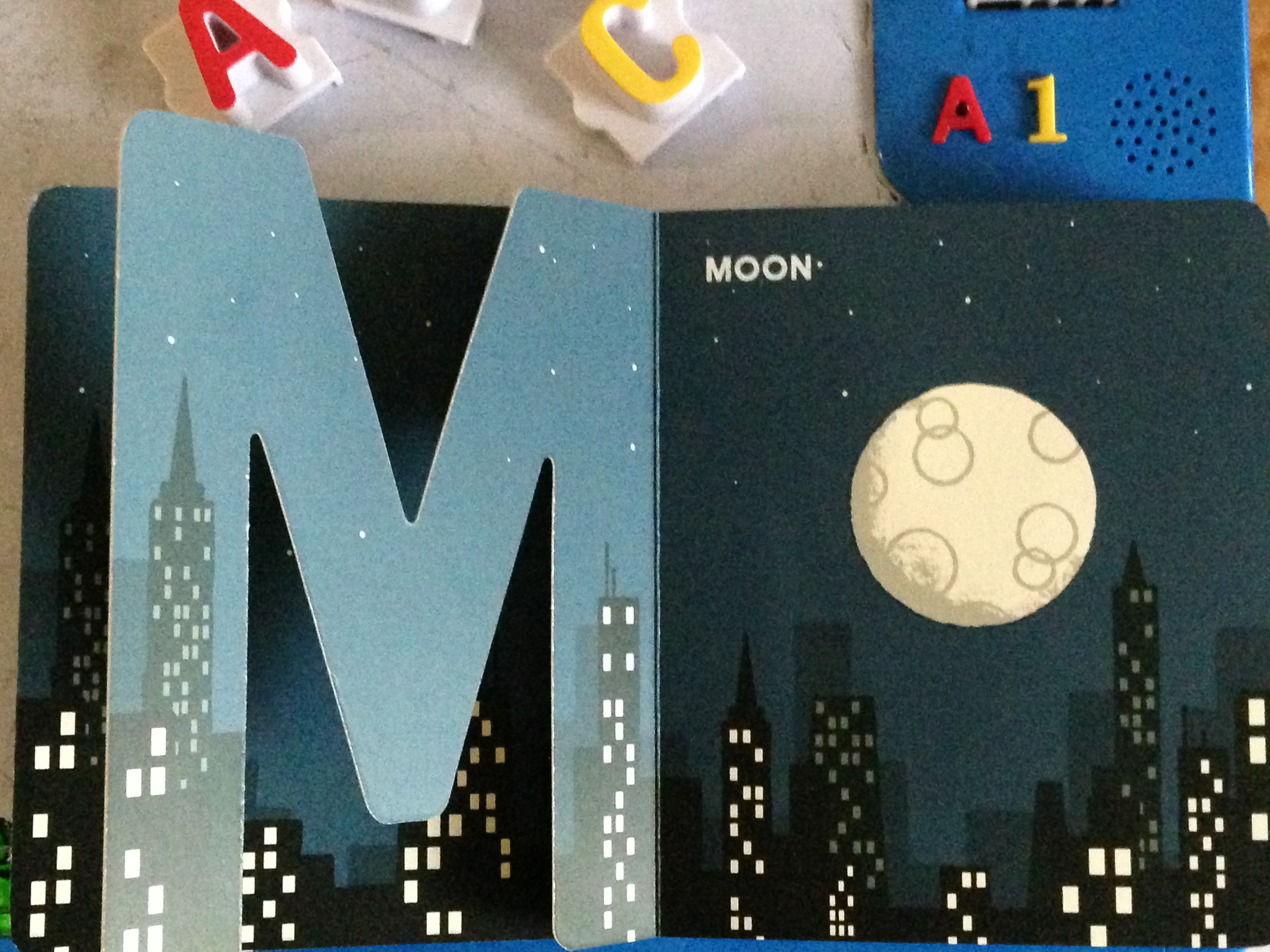So, I got this book to help. At the start of each Target grocery shopping trip, we stop by the book section first to grab some good reads for him during the cart ride. I found Alpha Block and loved it. I cannot stop looking at it and neither can he. He will soon be as smart as my firstborn!